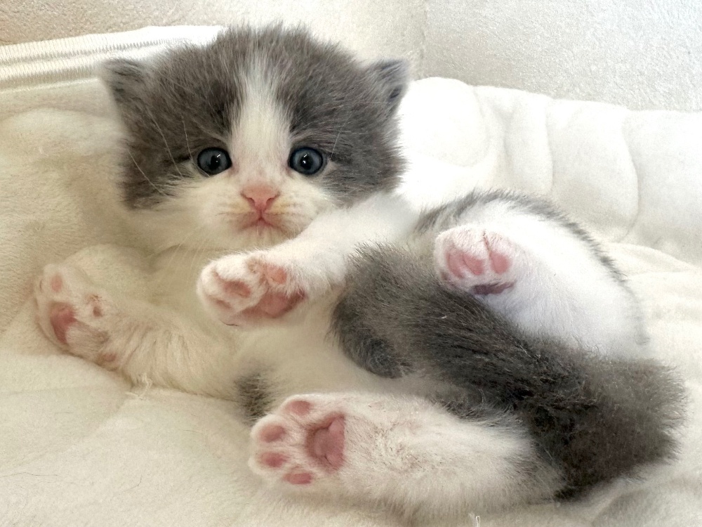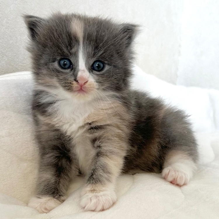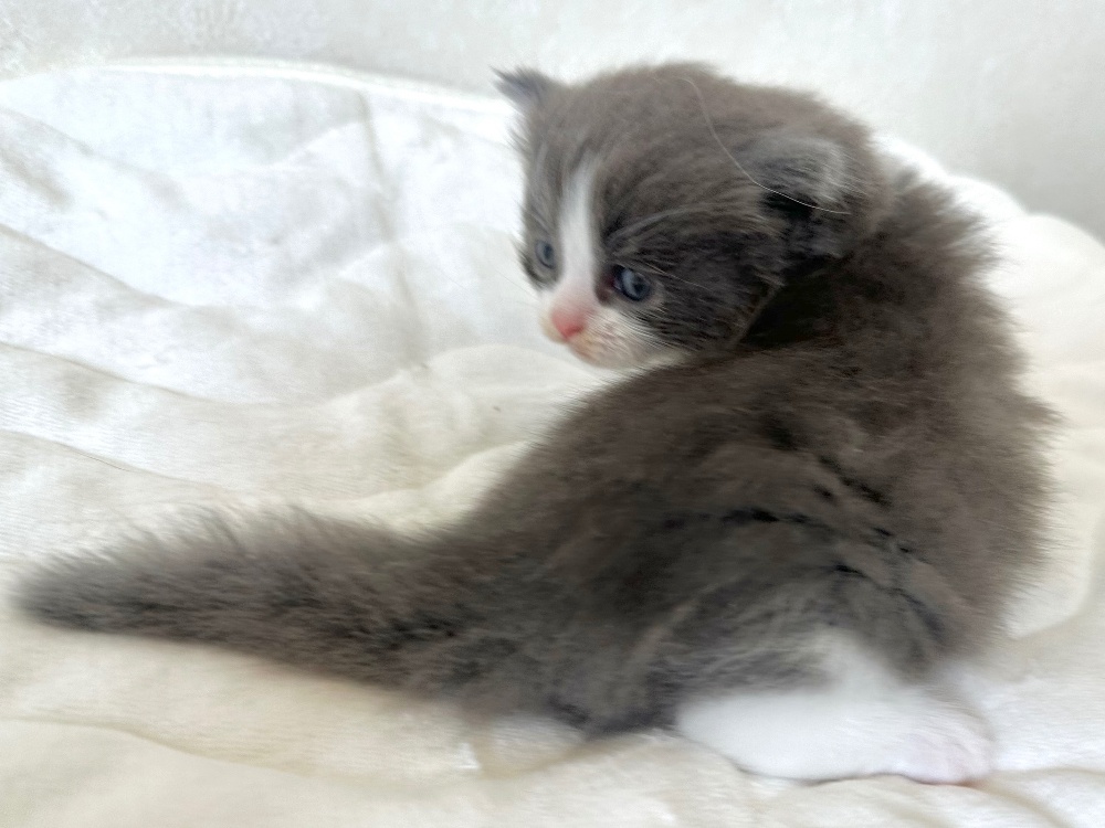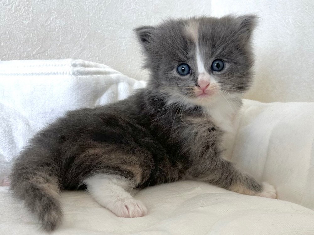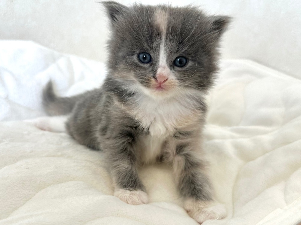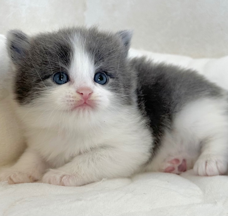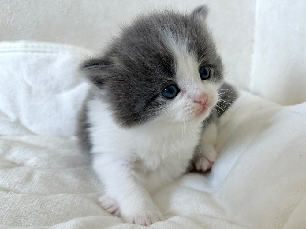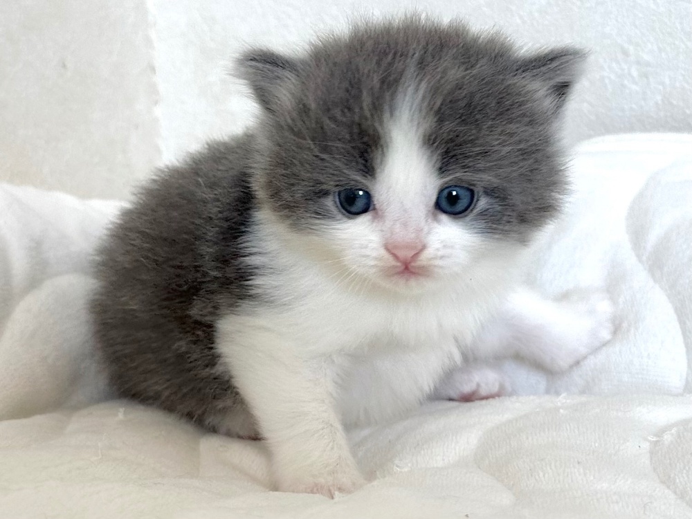 猫 種 : ラガマフィン誕生日 : 2025年11月26日毛 色 : ブルー&ホワイト性 別 : 男の子総 額 : 240,000円1/22よりお迎え可能です♪