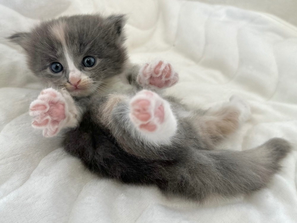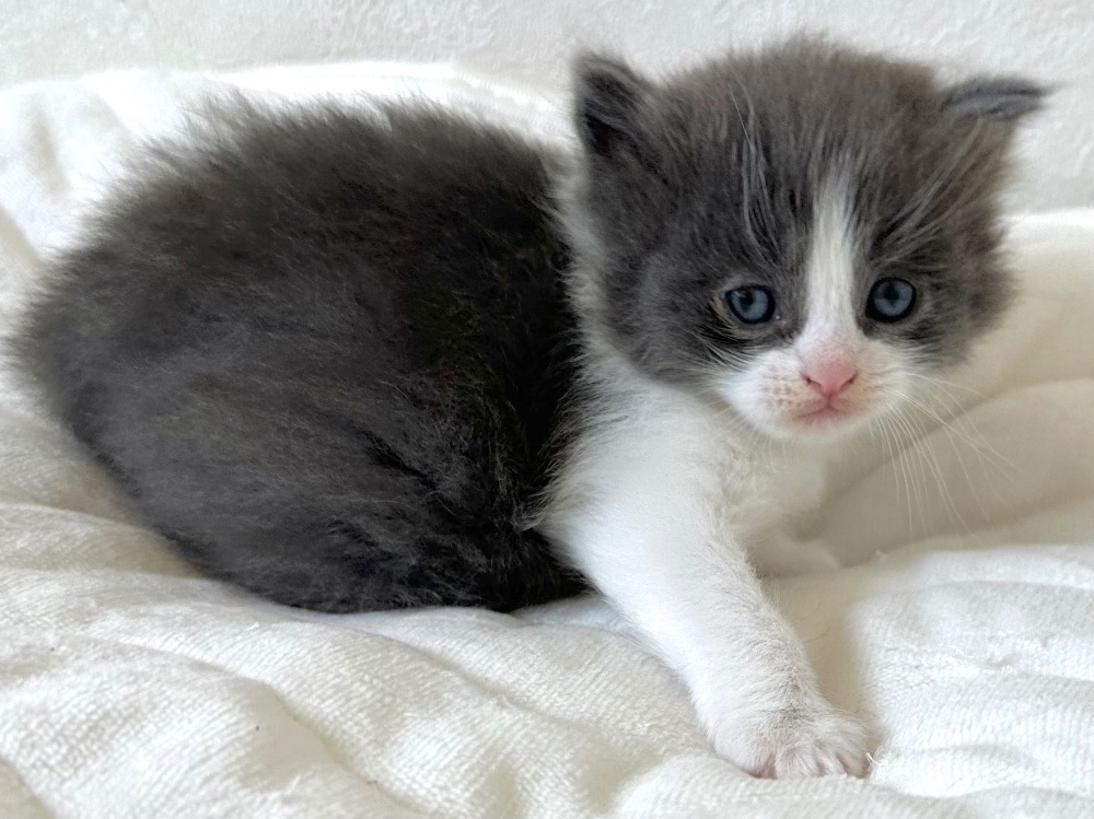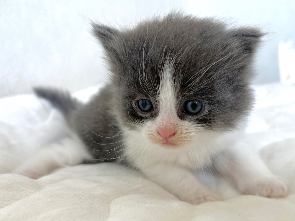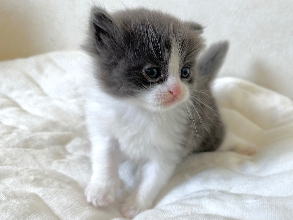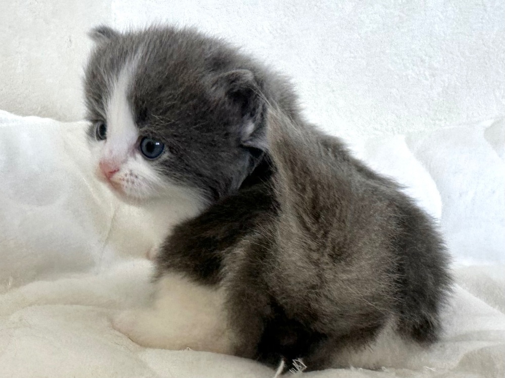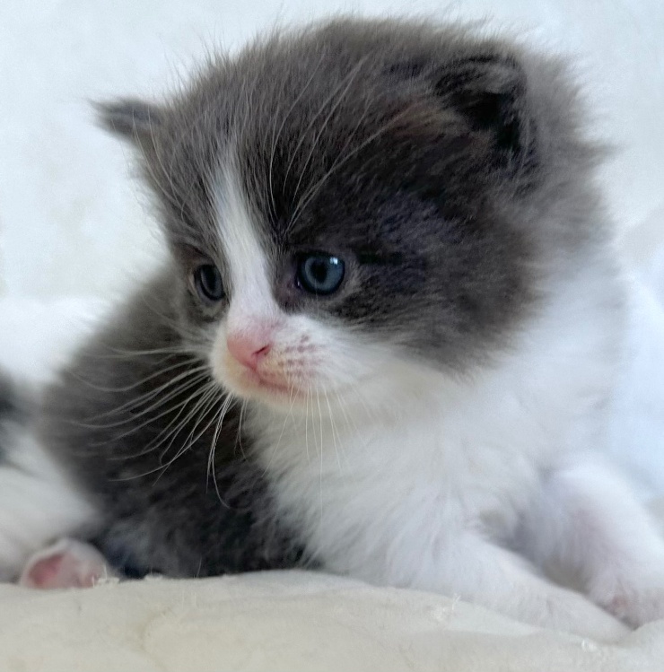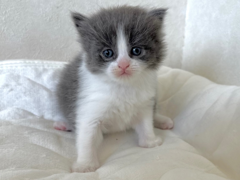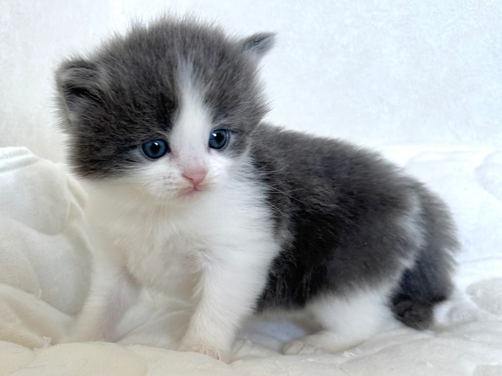 猫 種 : ラガマフィン誕生日 : 2025年11月26日毛 色 : ブルー&ホワイト性 別 : 男の子総 額 : 240,000円1/22よりお迎え可能です♪