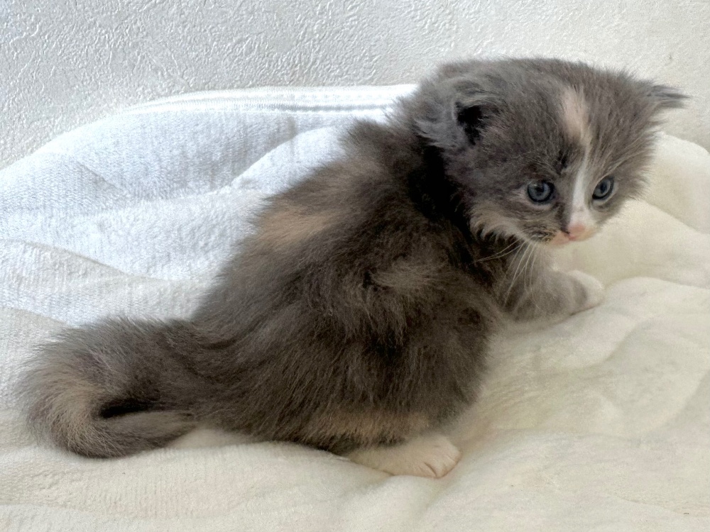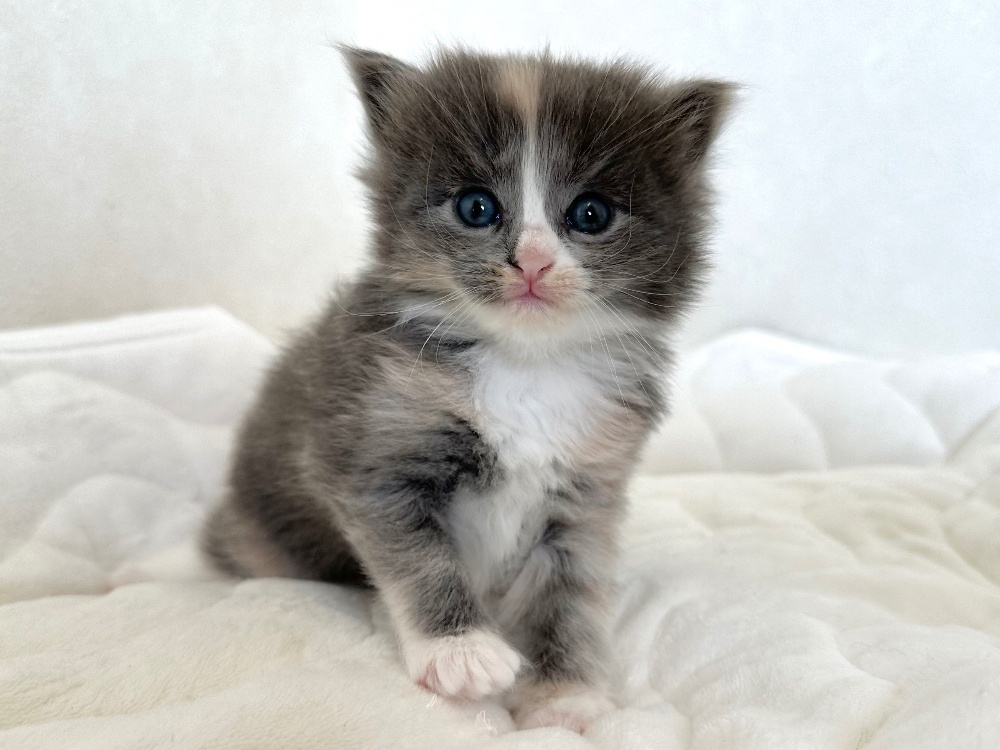 猫 種 : ラガマフィン誕生日 : 2025年11月26日毛 色 : ダイリュートキャリコ性 別 : 女の子総 額 : 240,000円1/22よりお迎え可能です♪