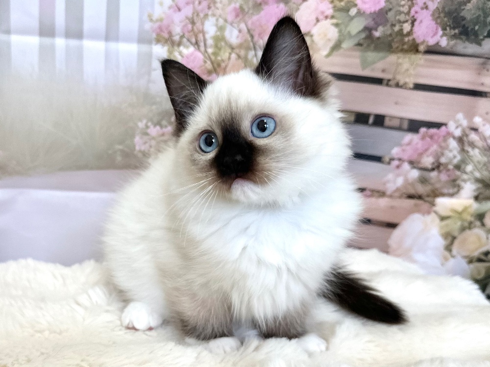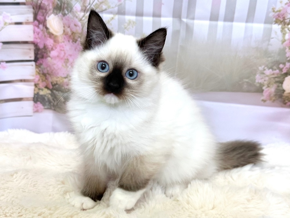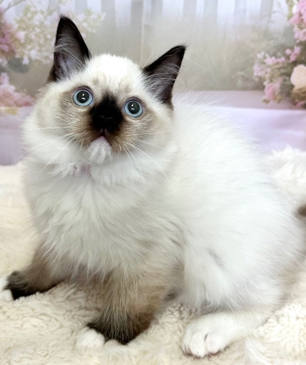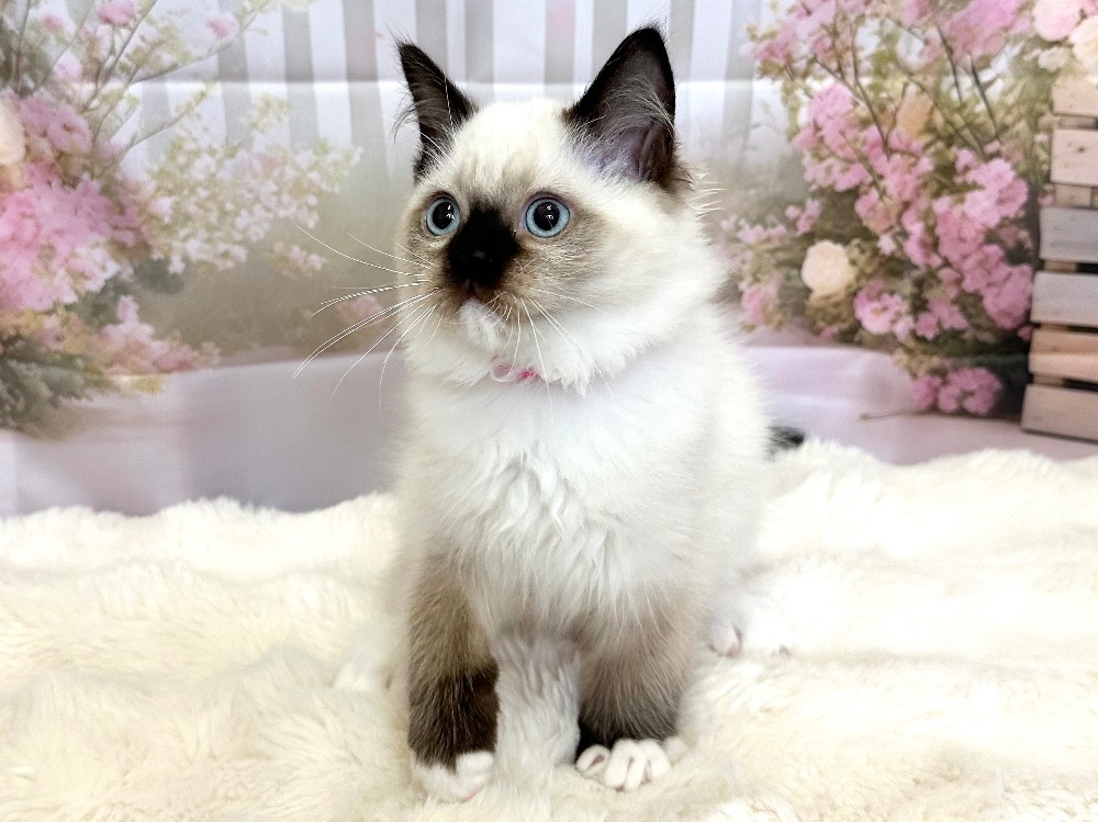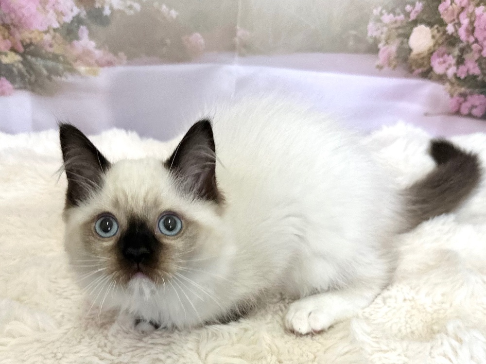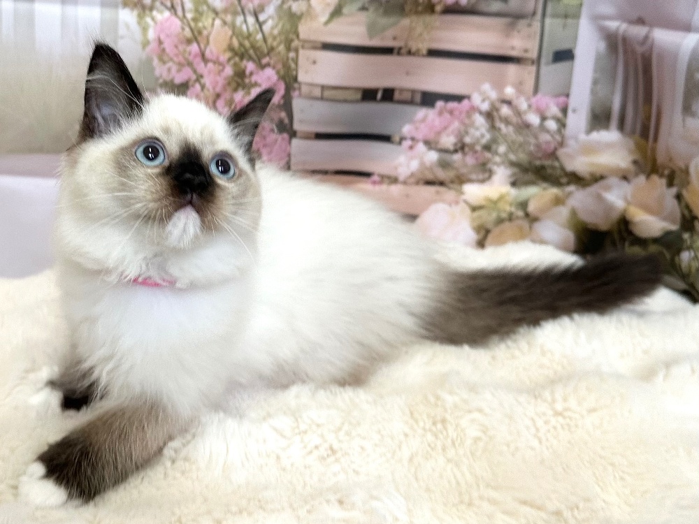 猫 種 : ラグドール誕生日 : 2026年1月11日毛 色 : シールポイント性 別 : 女の子総 額 : 210,000円見学と同時にお迎え可能です♪