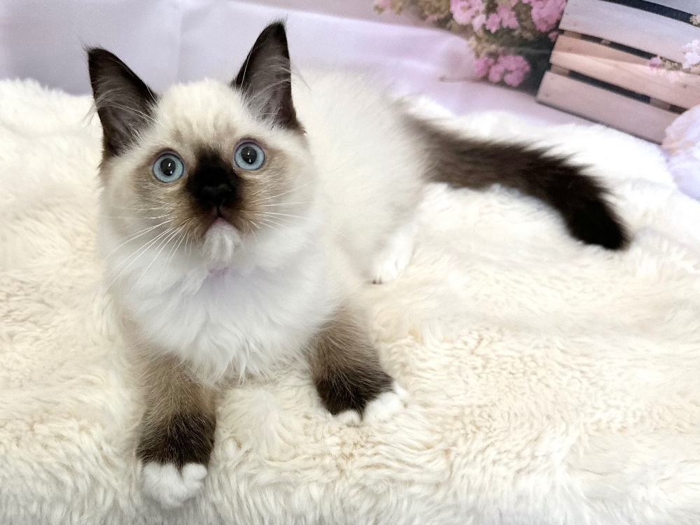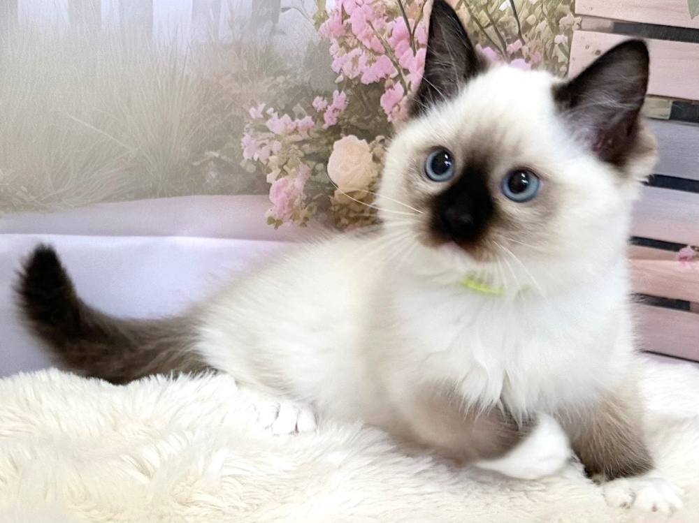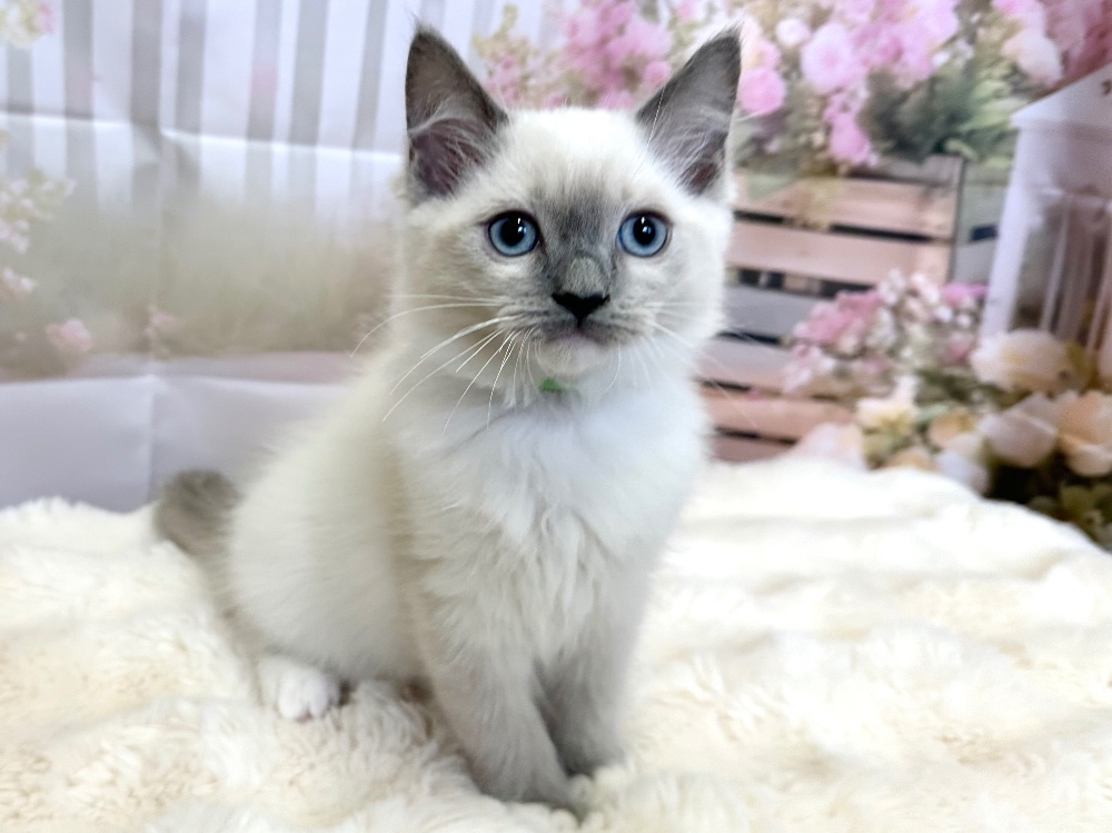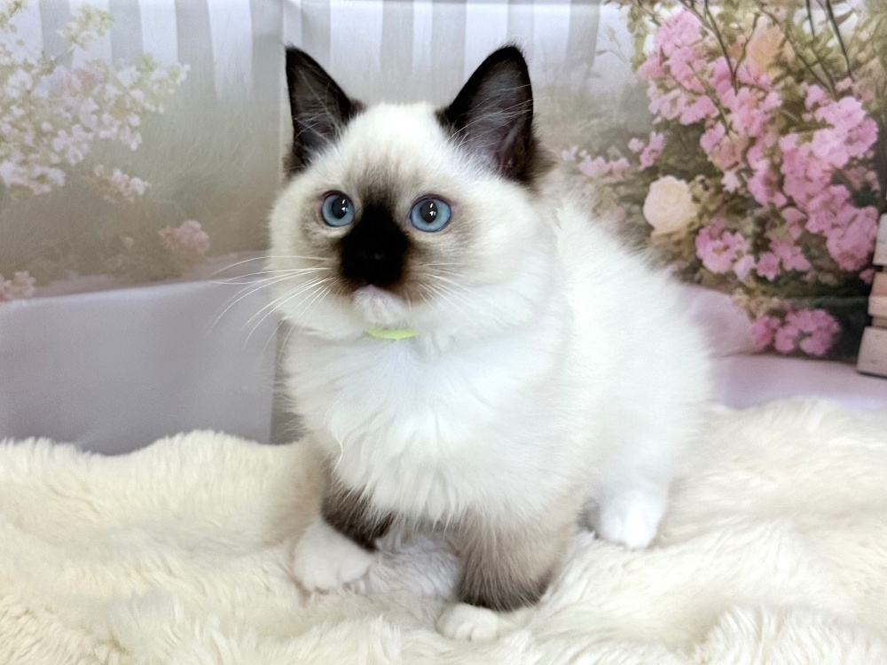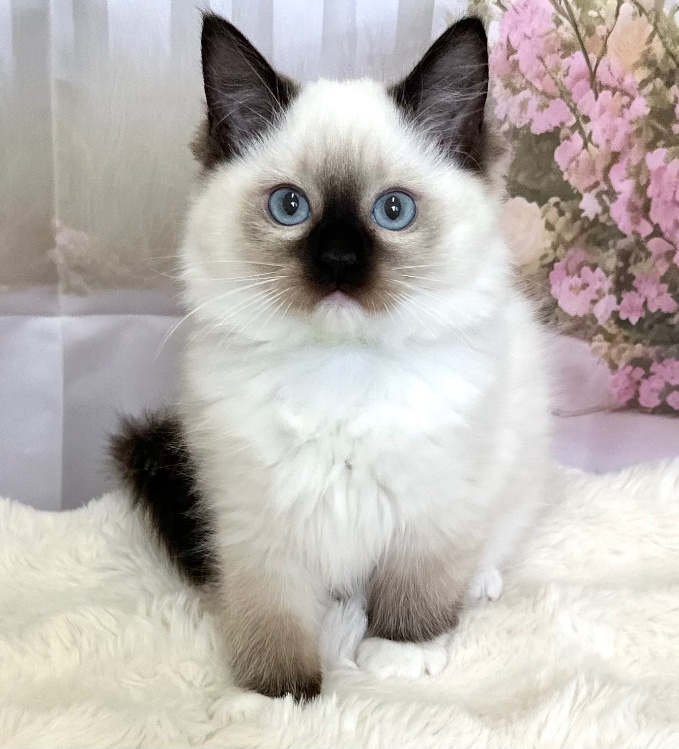 猫 種 : ラグドール誕生日 : 2026年1月11日毛 色 : シールポイント性 別 : 女の子総 額 : 210,000円見学と同時にお迎え可能です♪