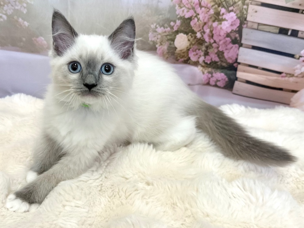 猫 種 : ラグドール誕生日 : 2026年1月1日毛 色 : ブルーリンクスポイントミテッド性 別 : 女の子総 額 : ー
