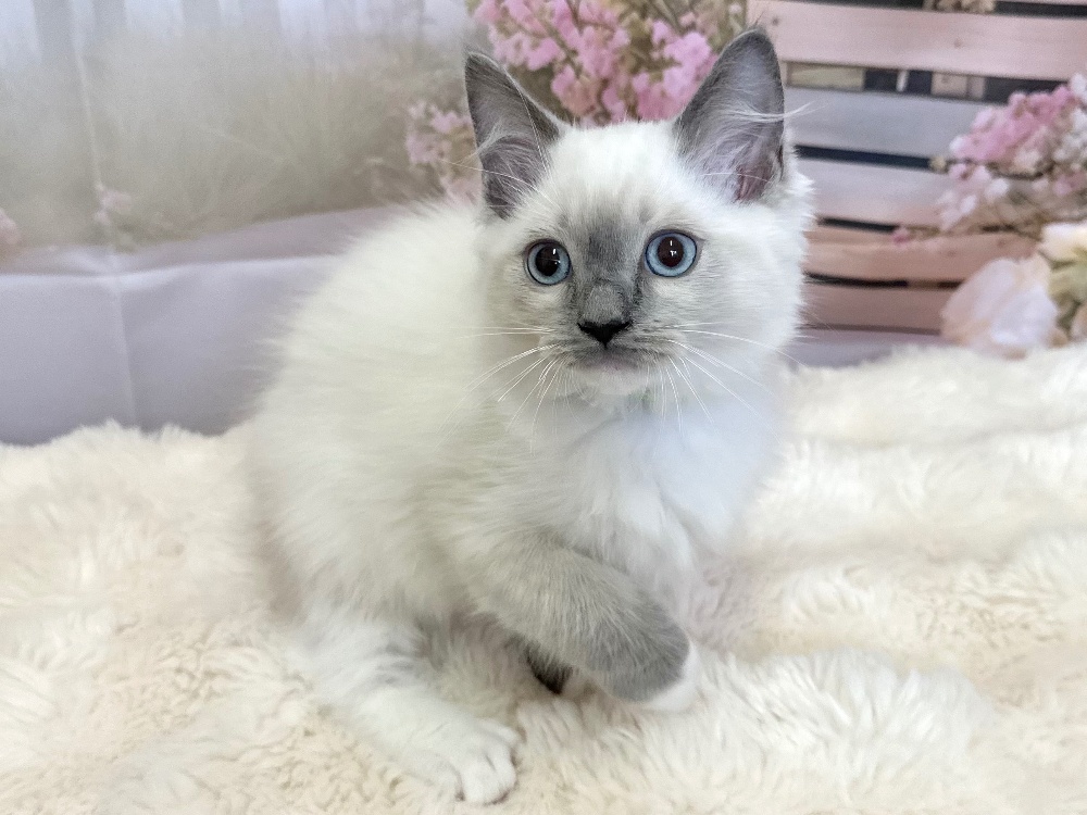 猫 種 : ラグドール誕生日 : 2026年1月1日毛 色 : ブルーリンクスポイントバイカラー性 別 : 男の子総 額 : ー見学と同時にお迎え可能です♪