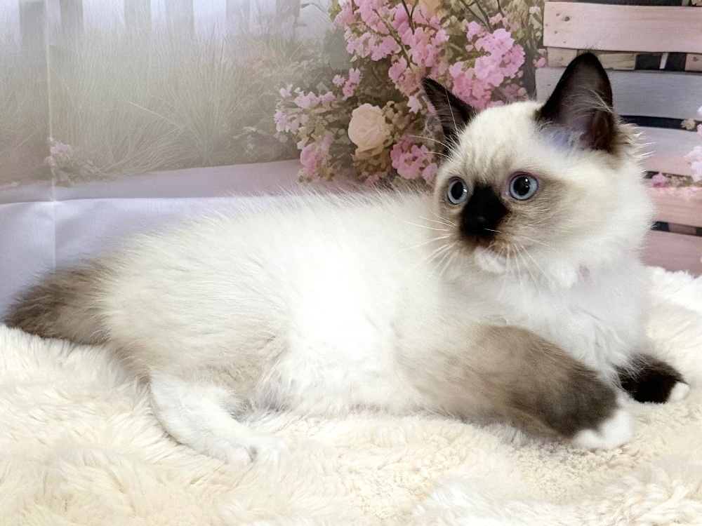 猫 種 : ラグドール誕生日 : 2026年1月11日毛 色 : シールポイントバイカラー性 別 : 女の子総 額 : ー