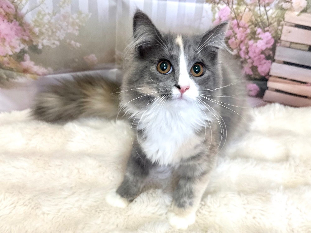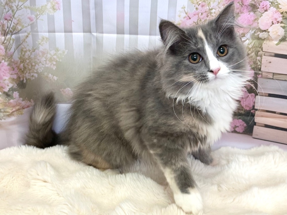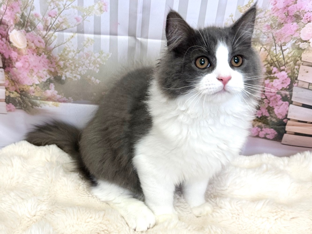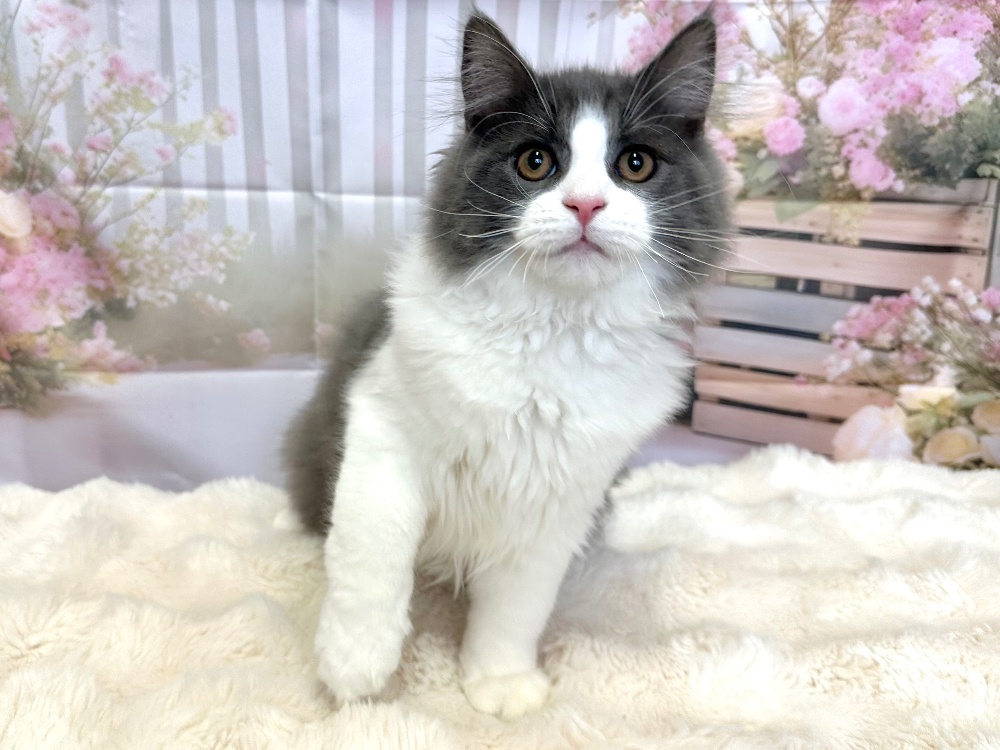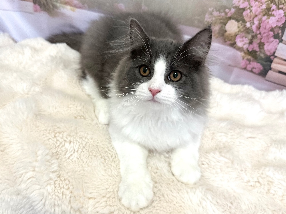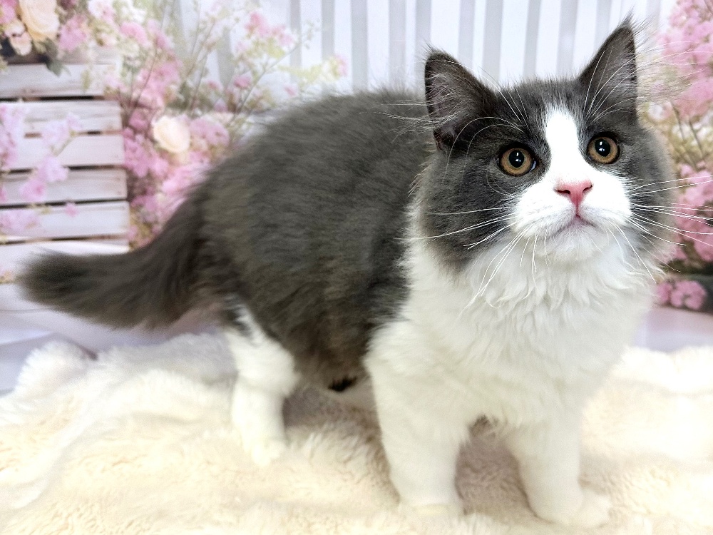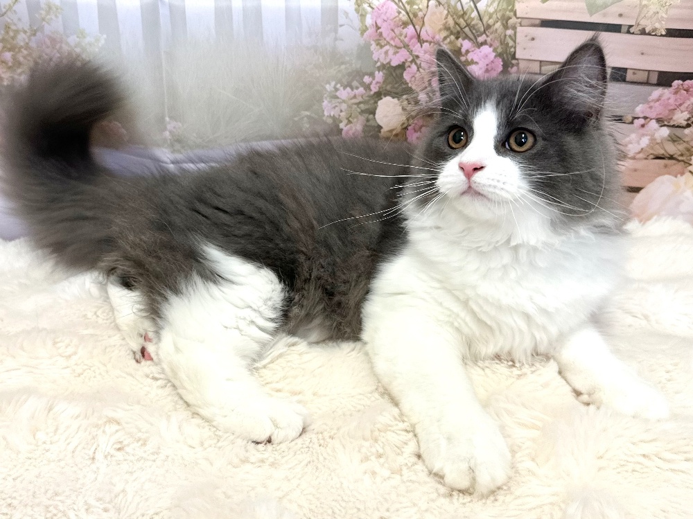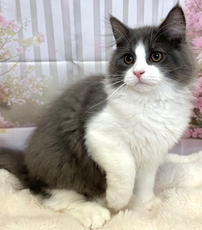 猫 種 : ラガマフィン誕生日 : 2025年11月26日毛 色 : ブルー&ホワイト性 別 : 男の子総 額 : 150,000円見学と同時にお迎え可能です♪