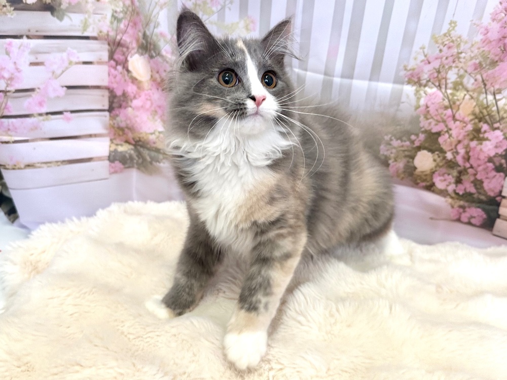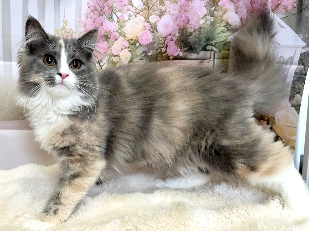 猫 種 : ラガマフィン誕生日 : 2025年11月26日毛 色 : ダイリュートキャリコ性 別 : 女の子総 額 : 150,000円見学と同時にお迎え可能です♪