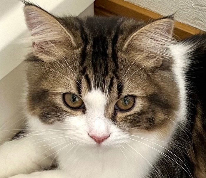 猫 種 ラガマフィン性 別 女の子毛 色 キャリコ誕生日 6月5日総 額 ー特 徴 おっとりマイペースな女の子