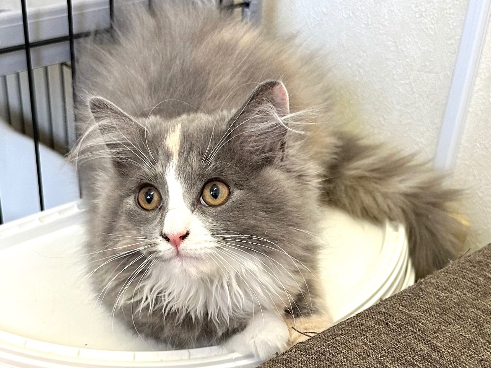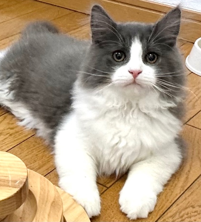 猫 種 : ラガマフィン誕生日 : 2025年11月26日毛 色 : ブルー&ホワイト性 別 : 男の子総 額 : ー