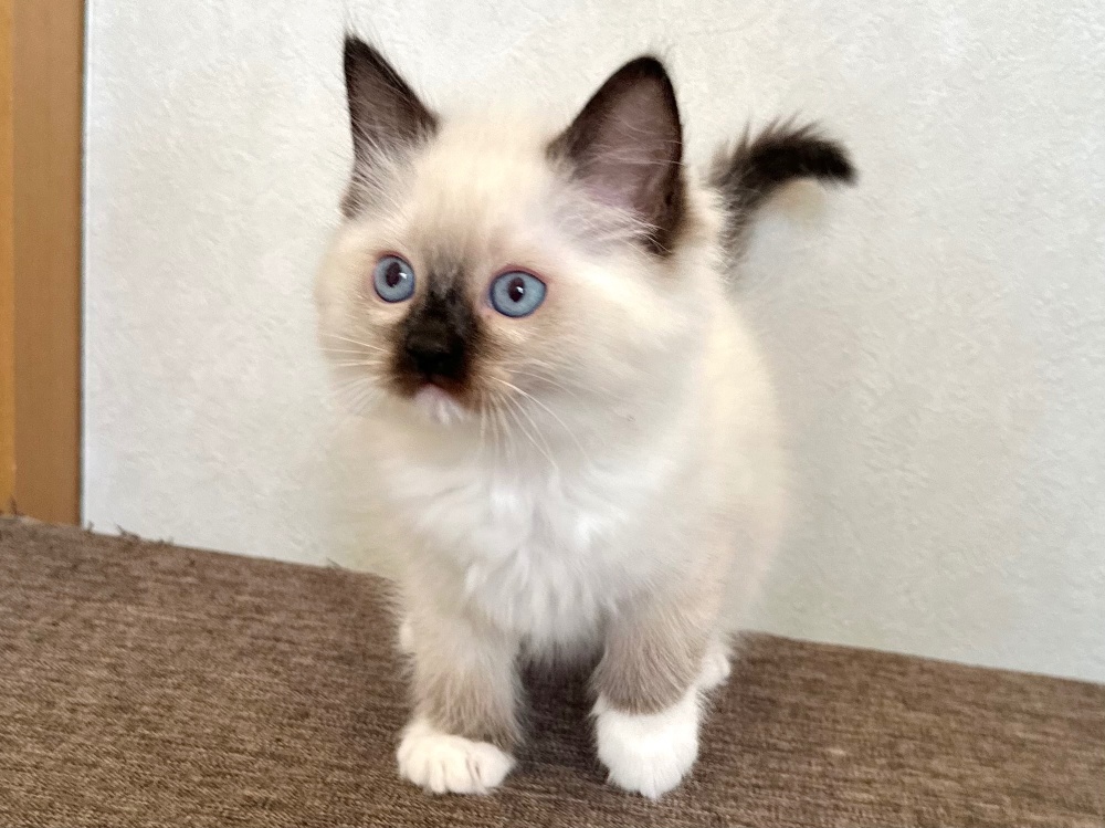 猫 種 : ラグドール誕生日 : 2026年1月11日毛 色 : シールポイント性 別 : 女の子総 額 : 210,000円見学と同時にお迎え可能です♪