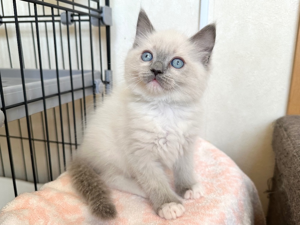 猫 種 : ラグドール誕生日 : 2026年1月1日毛 色 : ブルーポイントバイカラー性 別 : 男の子総 額 : 210,000円見学と同時にお迎え可能です♪