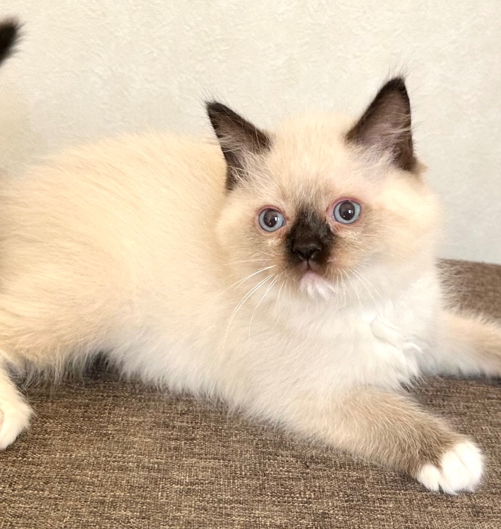猫 種 : ラグドール誕生日 : 2026年1月11日毛 色 : シールポイントミテッド性 別 : 女の子総 額 : 210,000円見学と同時にお迎え可能です♪